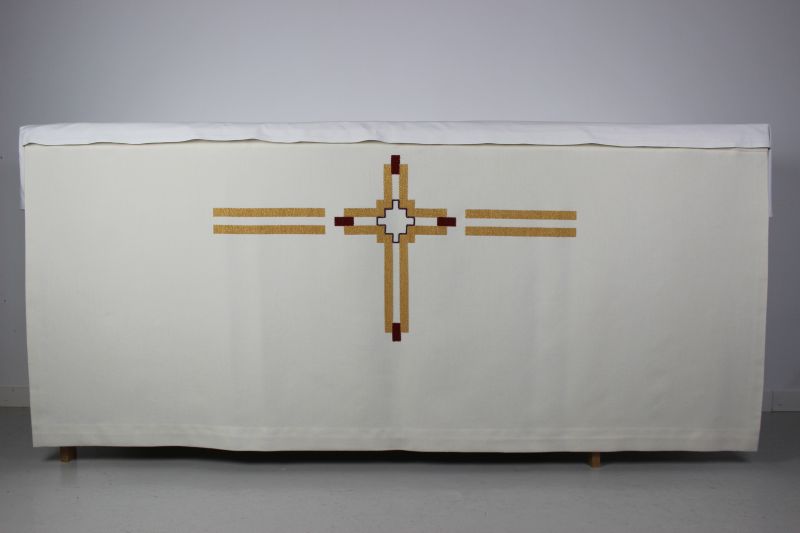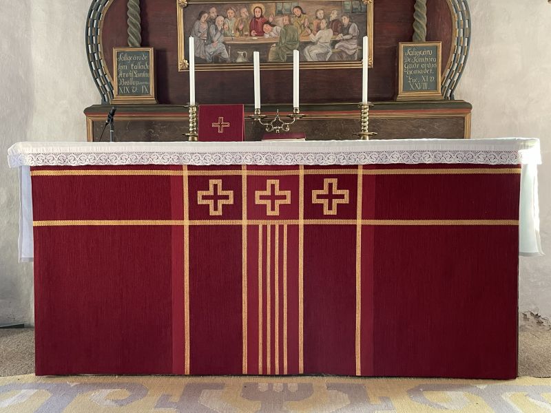 Altarets prydnad formges unikt för varje altare och upphängningen anpassas för att bli på bästa sätt. Materialet är ullgarn av hög kvalitet med ett foder i lämplig färg.